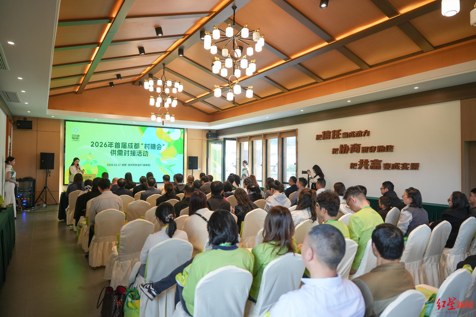 3月27日下午,以“村糖优品通四海·好物出川链全球”为主题的2026年首届成都“村糖会”供需对接活动在天府酒村梁景村举行,现场汇聚金融机构、行业协会及京东、美团、盒马、朴朴等近百家供需企业代表,搭建高效务实的对接平台,推动“蓉品出川出海”迈出坚实步伐。